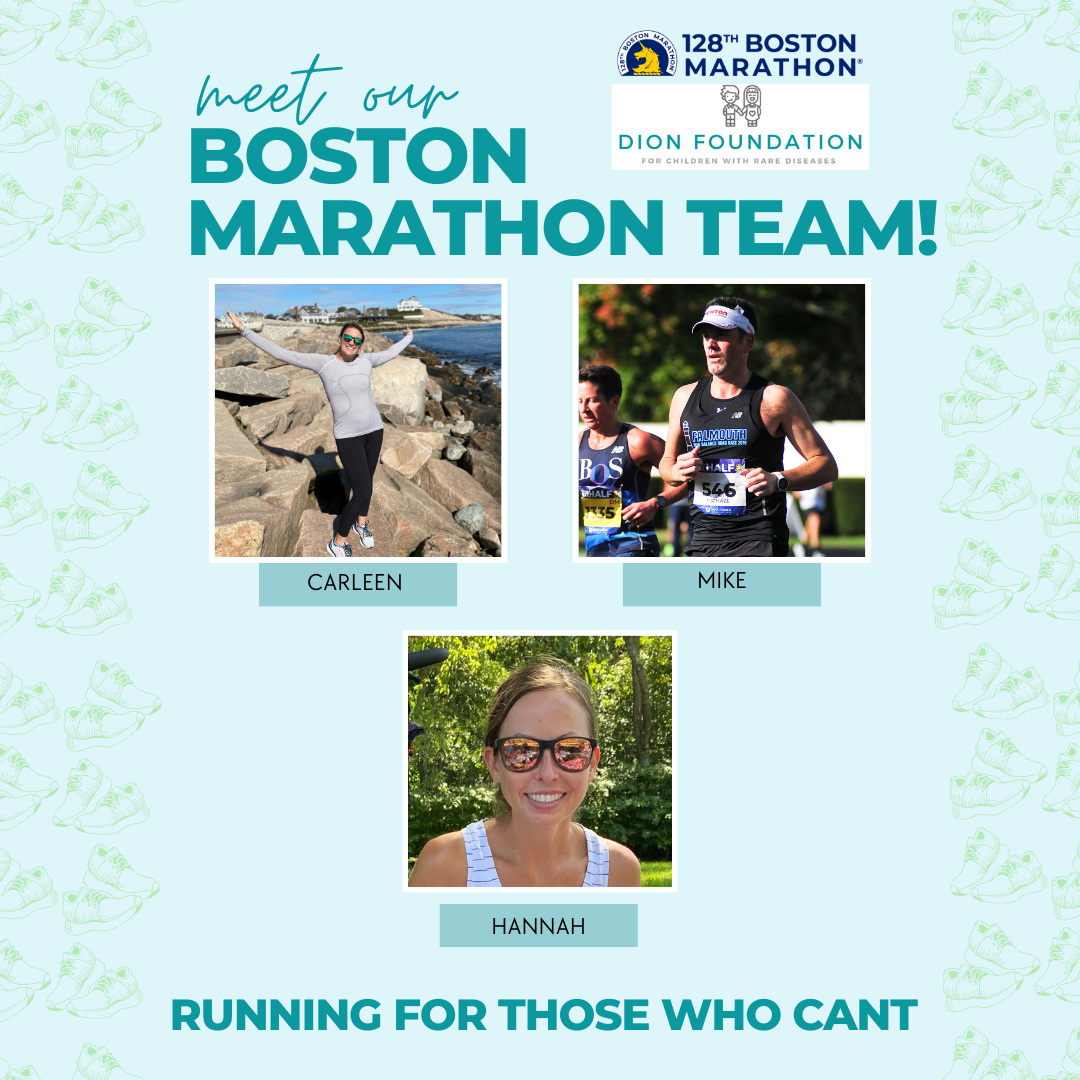 We are so honored to have these amazing athletes on Team Dion! Over the next few months, they will become a true ambassador by sharing our mission with their donors, physically and mentally preparing their bodies to run the 128th Boston Marathon 26.2 miles on April 15, 2024, and most of all believing in the work of the Dion Foundation. THANK YOU TEAM DION!